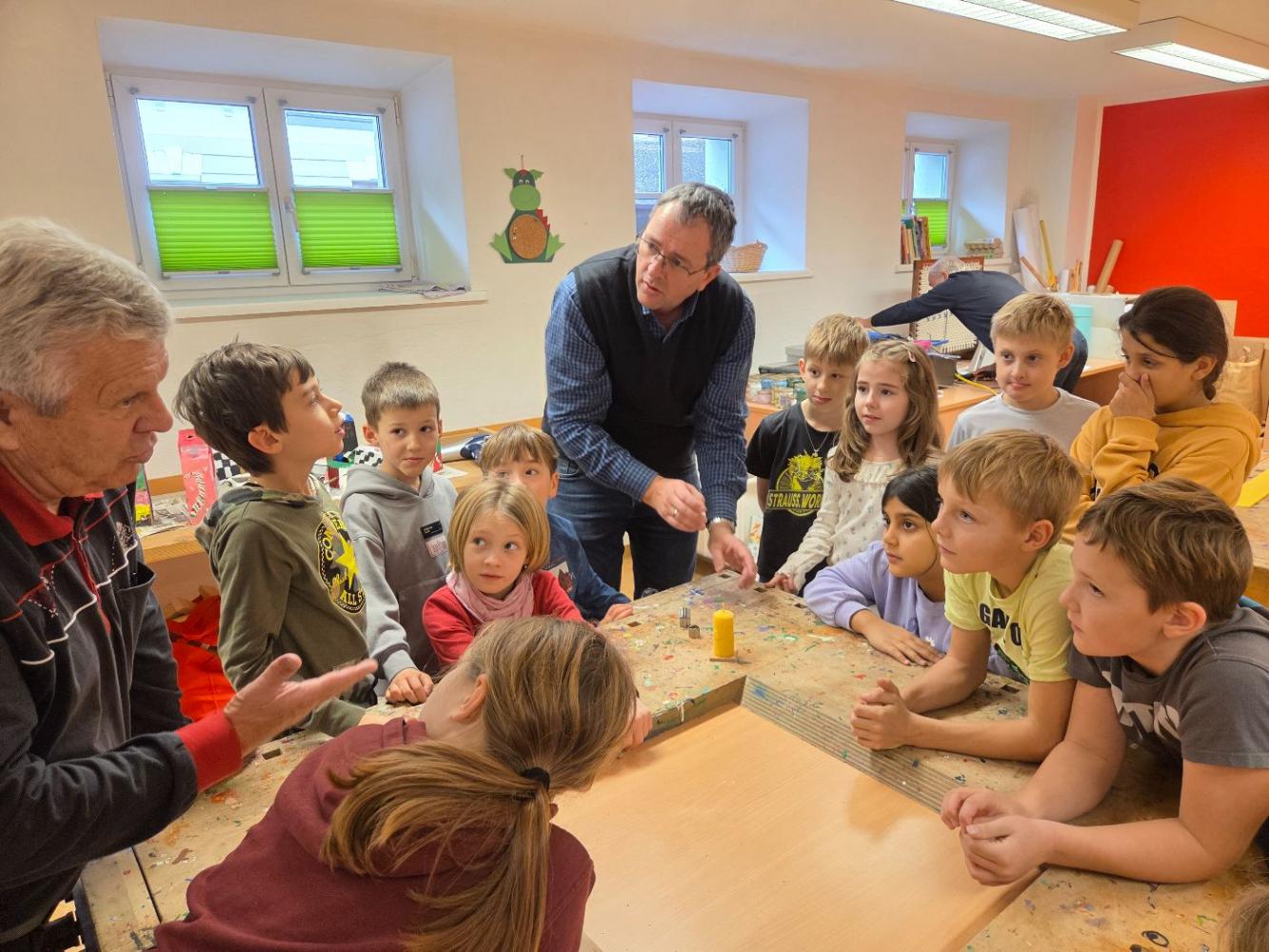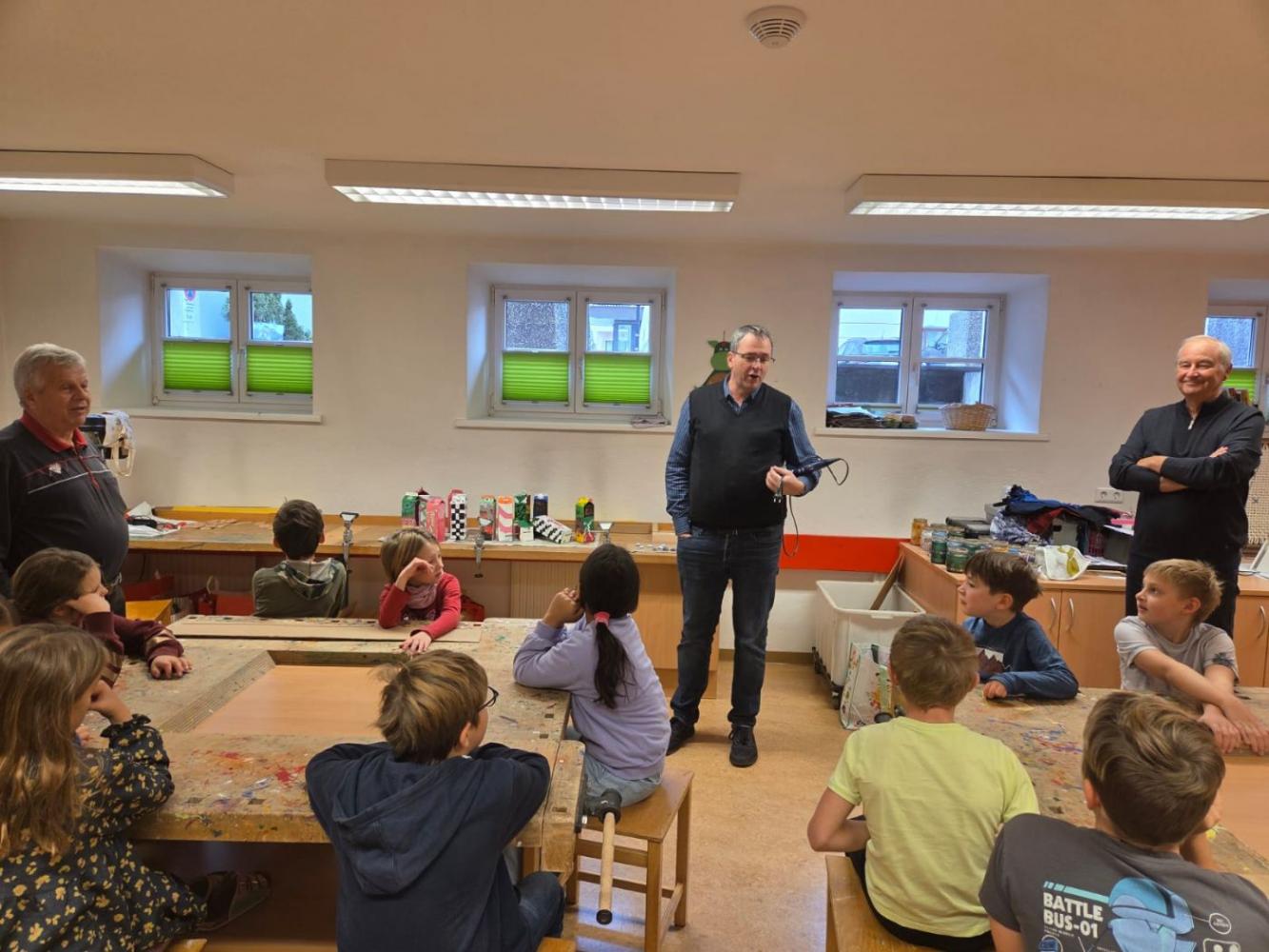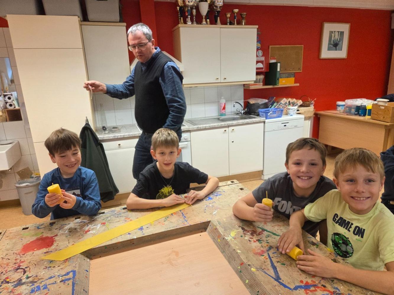 Bienenwachskerzen zur Adventzeit von VS Nassereith 28. November 2025 VSN kreativ 3a 3b Xmas Fein - Christian, Oswald und Otto vom Imkerverein stellen sich bei uns ein!Mit ihren mitgebrachten Bienenwachsplatten (Vielen Dank dafür!) und dem richtigen Dreh entstehen "im Handumdrehen" handgefertigte Kerzen.Wunderbar, wie das reine Bienenwachs duftet, gerade richtig zur beginnenden Adventzeit.