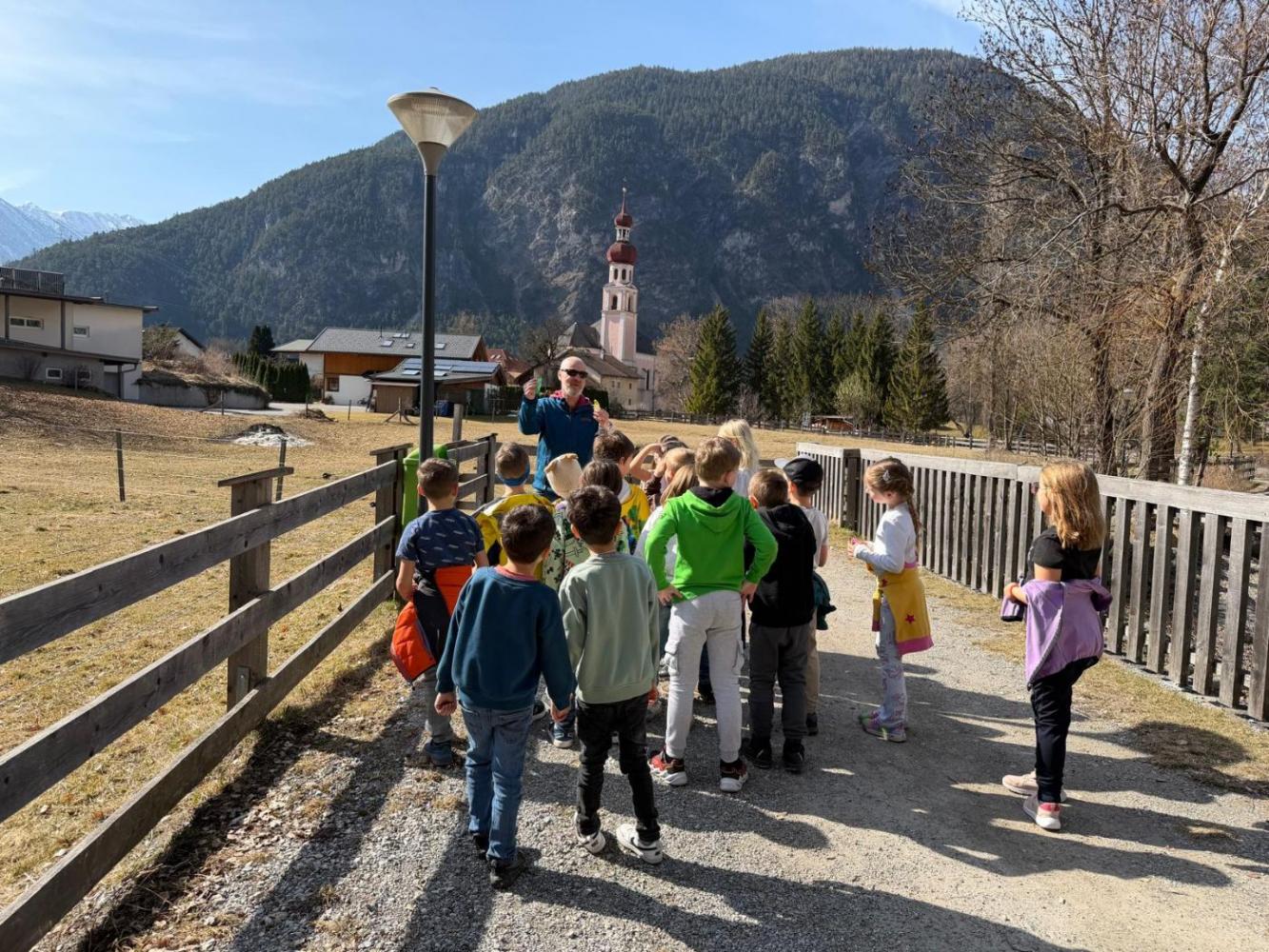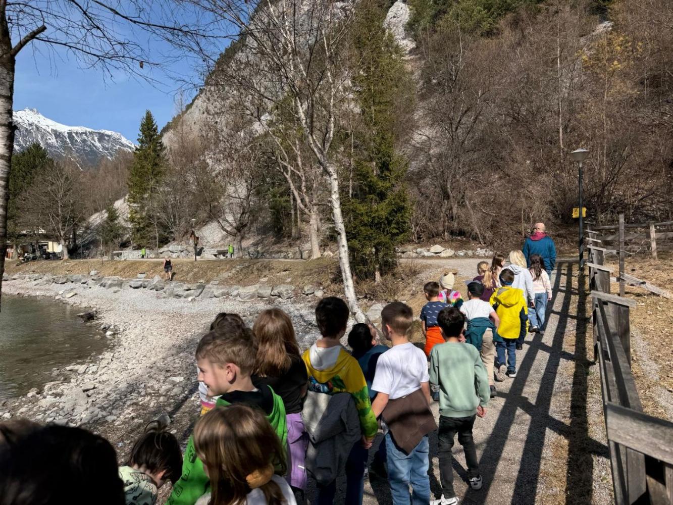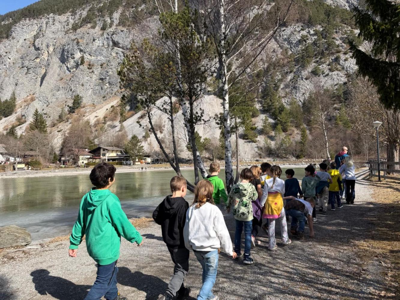 In der schianen Friahjåhrszeit... von VS Nassereith 10. März 2026 1b 1a ...marschiere die Ersterler der VS Nassereith👨🏫......um´n Sea🏞️, weil es isch it weit -fir´s Spårchet-Waldele🌲 bleibt o no Zeit,ma schåfft´s sogår bis eie ins Greit,wo´s iberåll Leberbliamle🌼 zu entdecke geit.Mei, dar Langez, der frebt hålt alle Leit! 😄