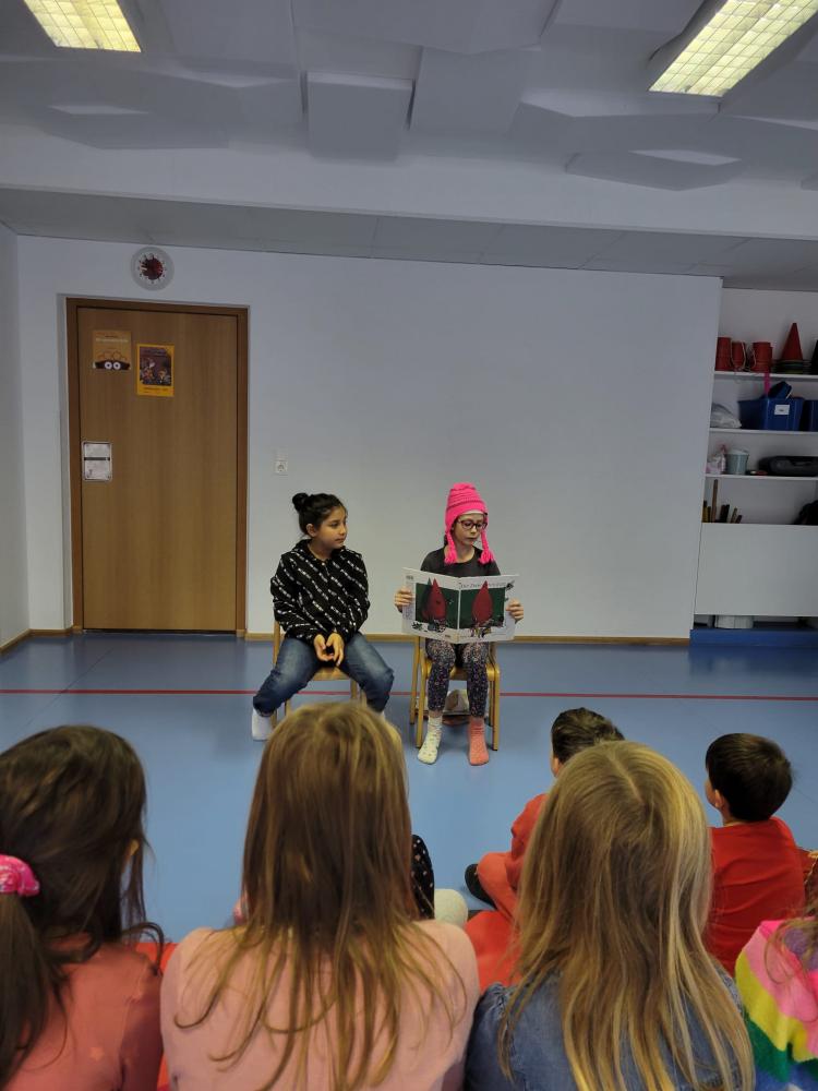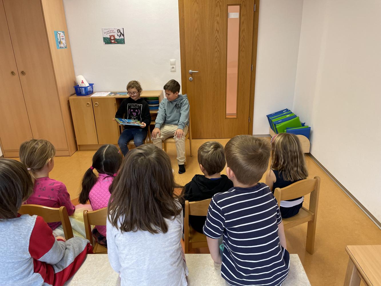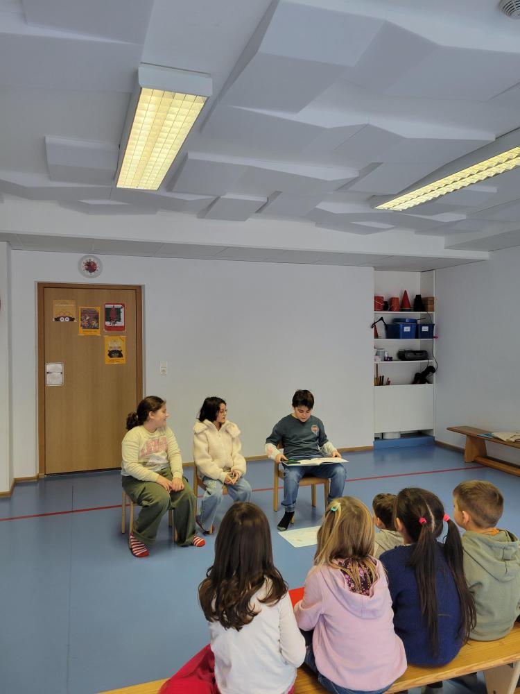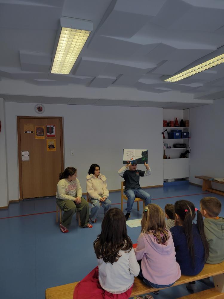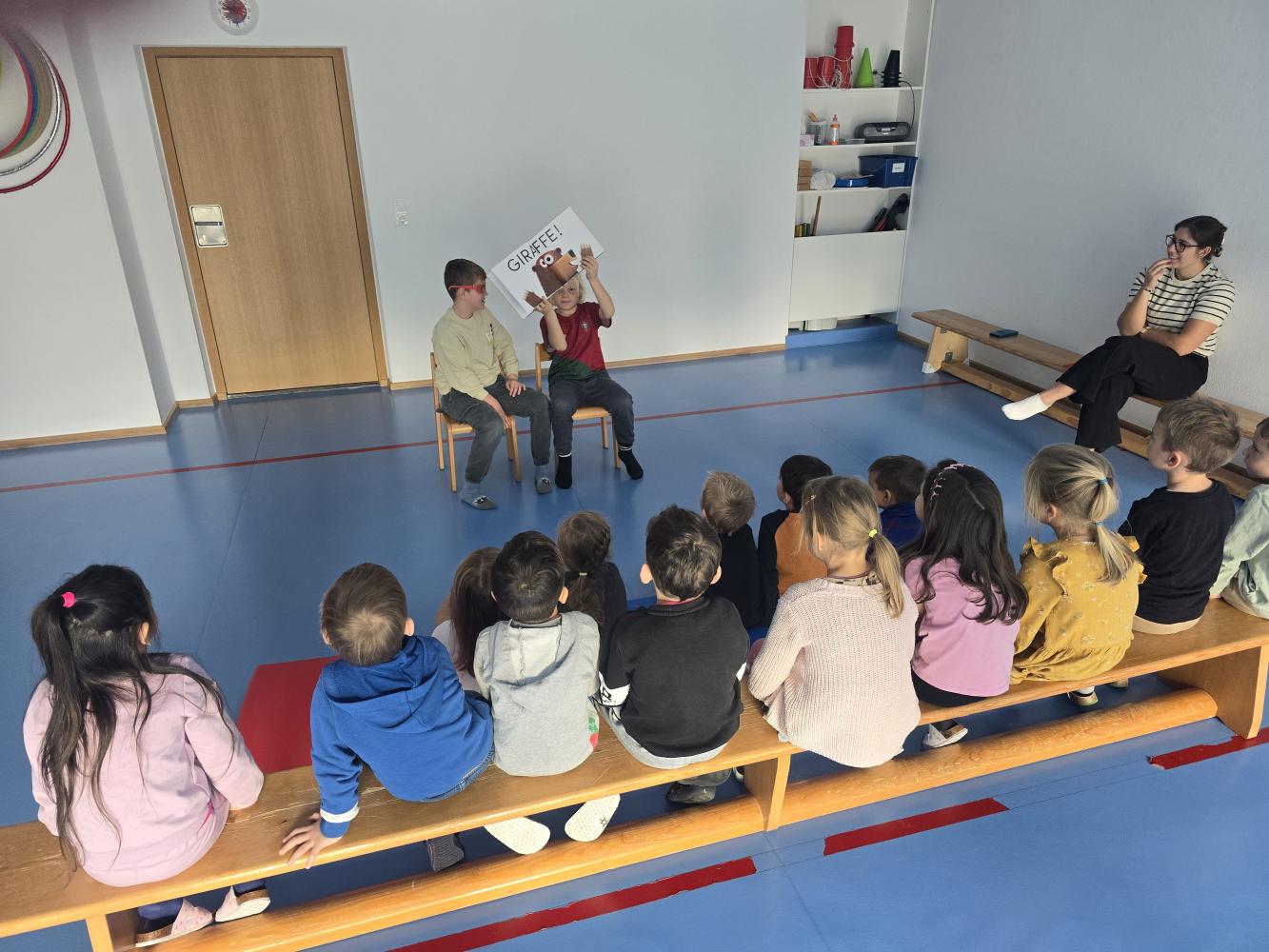 Immer dienstags besuchen unsere Dritterler in 2er-Leseteams den Kindergarten. Dort präsentieren sie den Kindern jeweils ein Bilderbuch und lesen es der gespannten Zuhörerschaft vor.