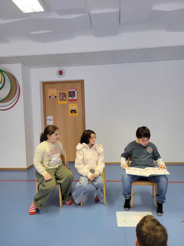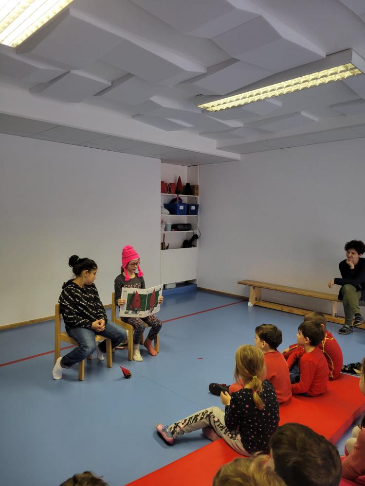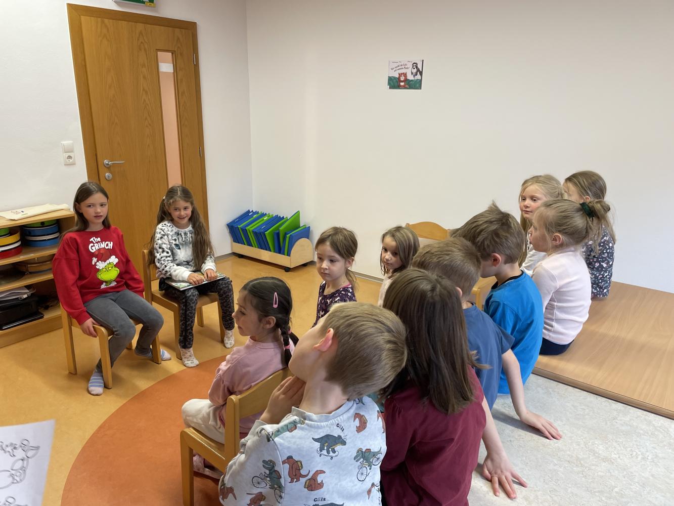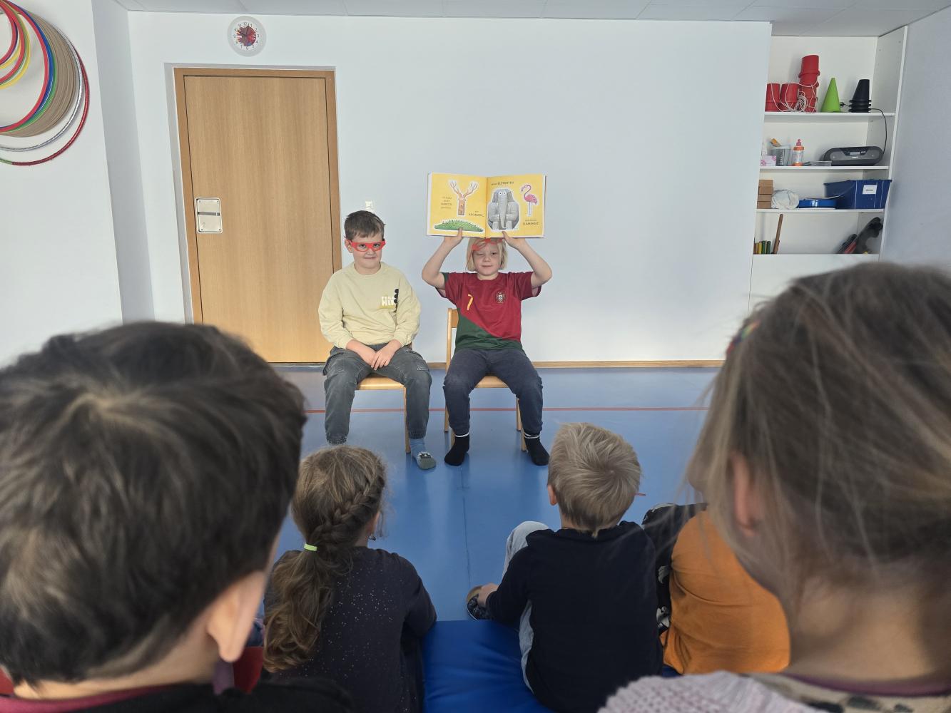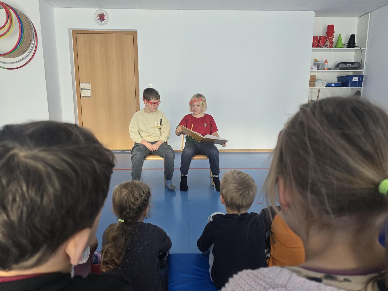 Immer dienstags besuchen unsere Dritterler in 2er-Leseteams den Kindergarten. Dort präsentieren sie den Kindern jeweils ein Bilderbuch und lesen es der gespannten Zuhörerschaft vor.