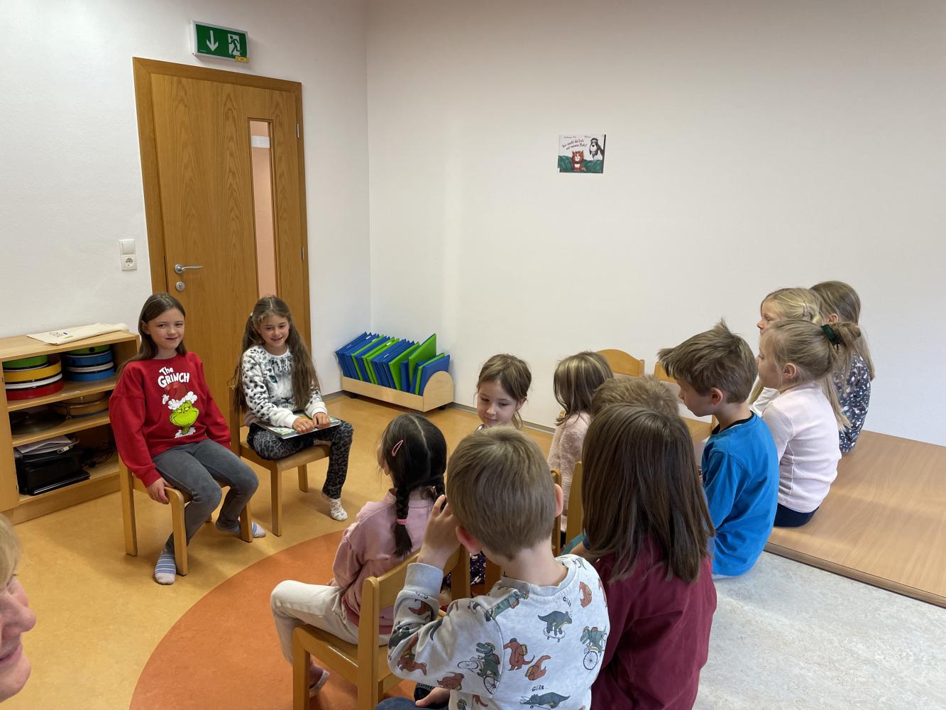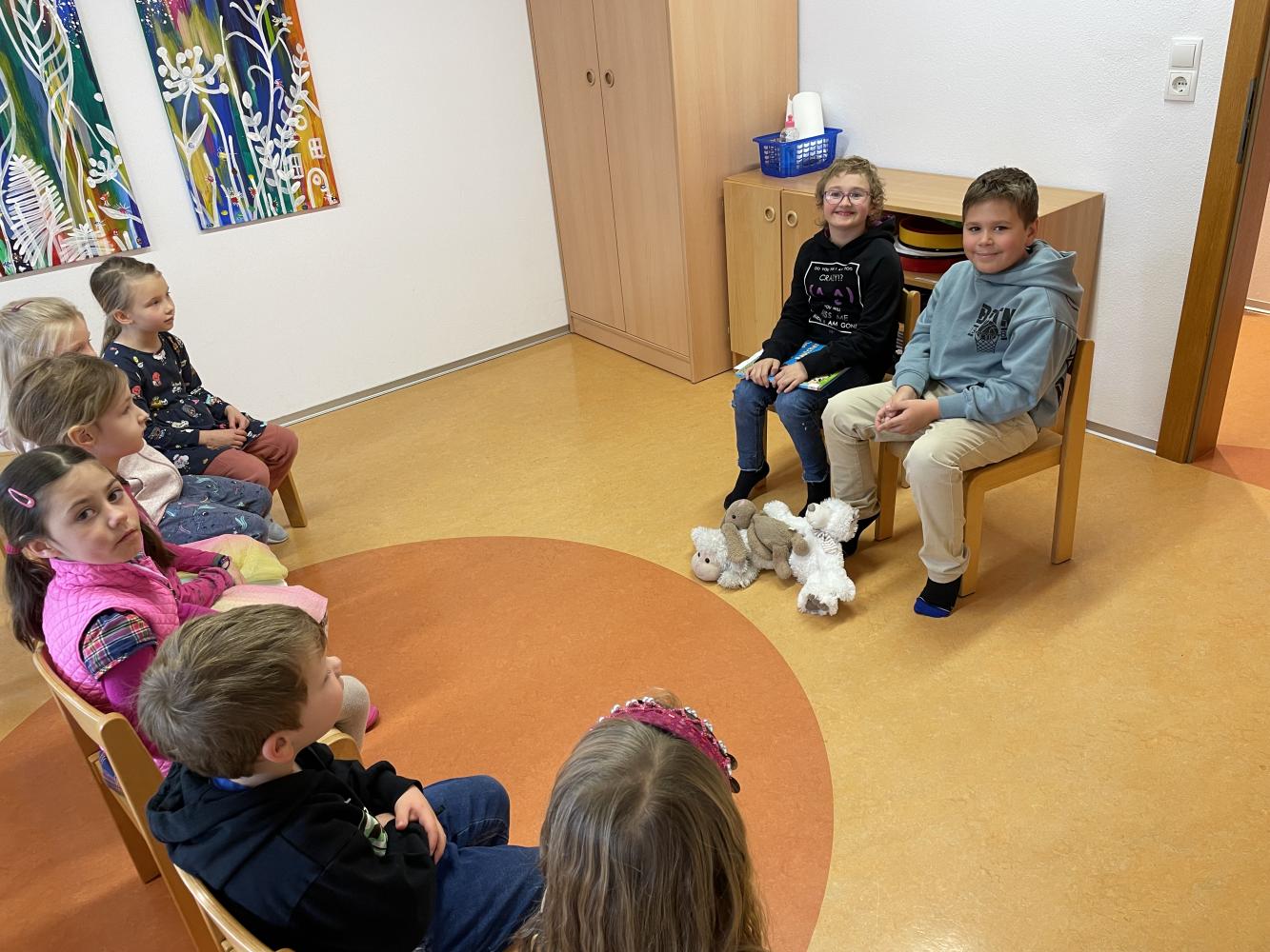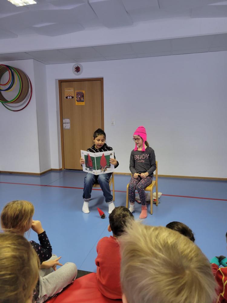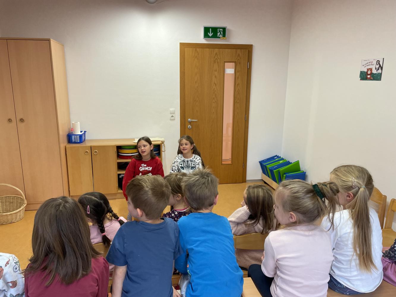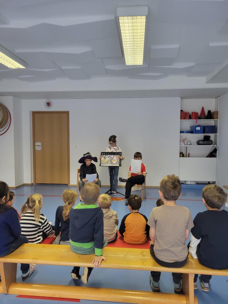 Immer dienstags besuchen unsere Dritterler in 2er-Leseteams den Kindergarten. Dort präsentieren sie den Kindern jeweils ein Bilderbuch und lesen es der gespannten Zuhörerschaft vor.