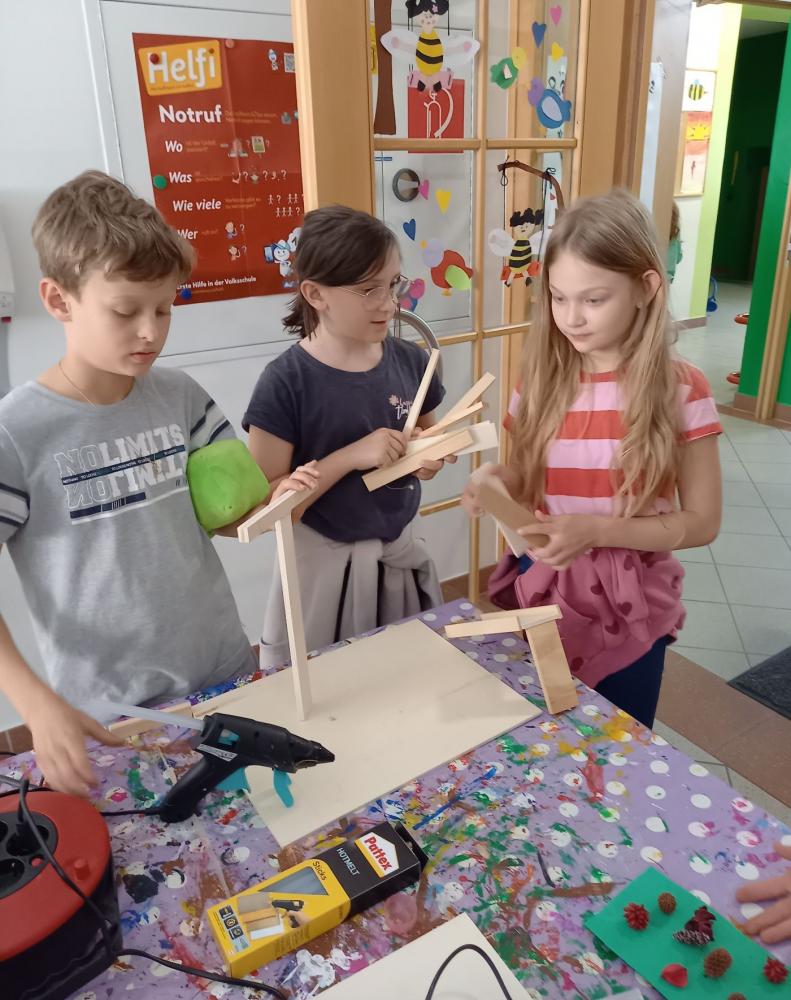 In der schulischen Tagesbetreuung wird der Erfindergeist geweckt. Kein Wunder, wenn so viele unterschiedliche Materialien angeboten werden mit denen die Kinder selbstständig kreativ werden können. Da wird gebastelt was das Zeug hält!