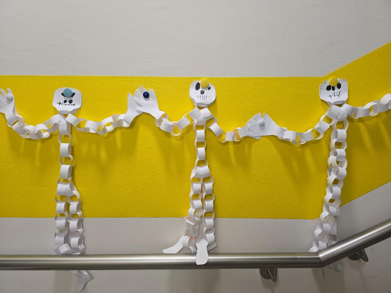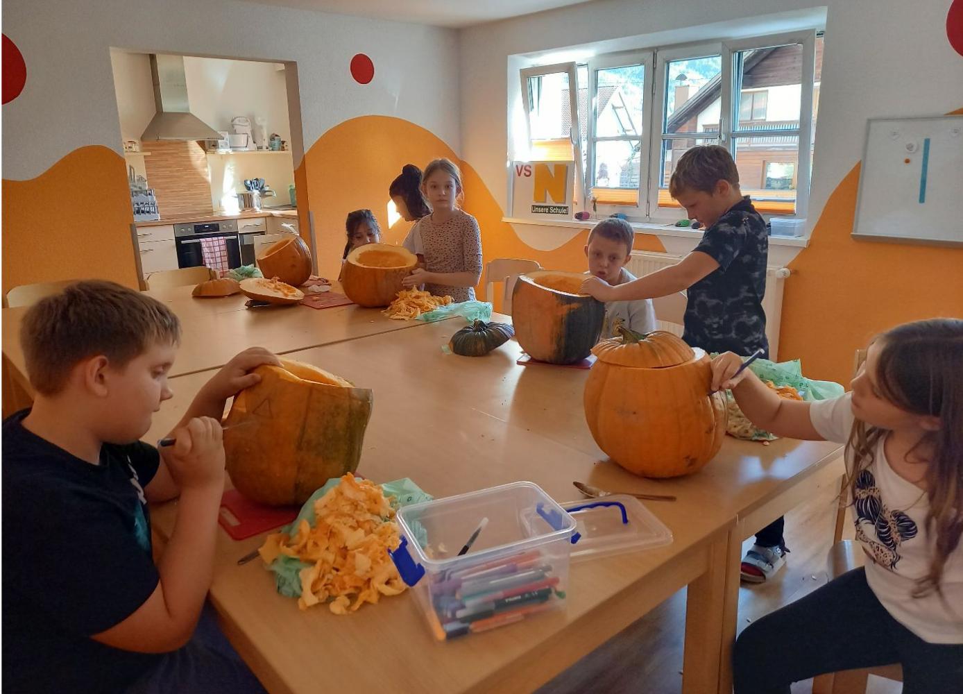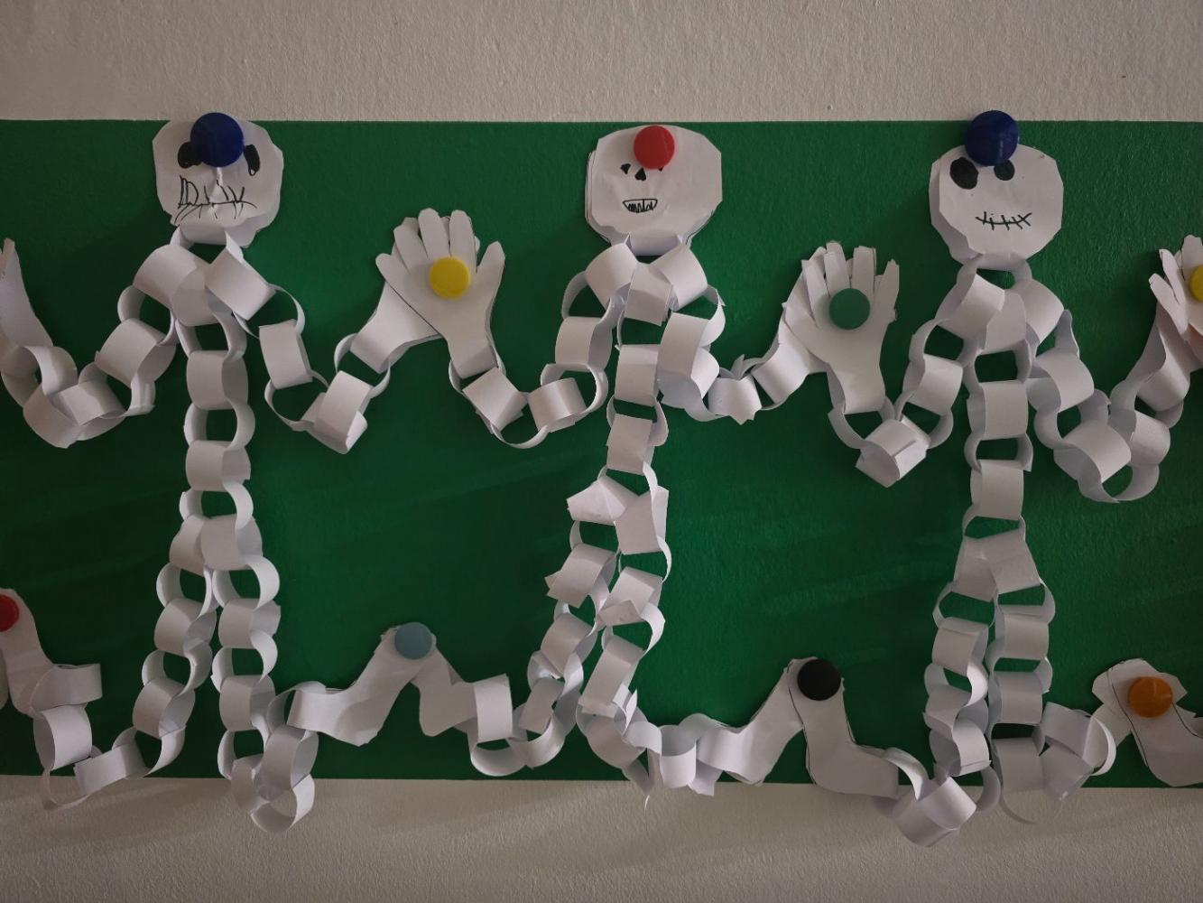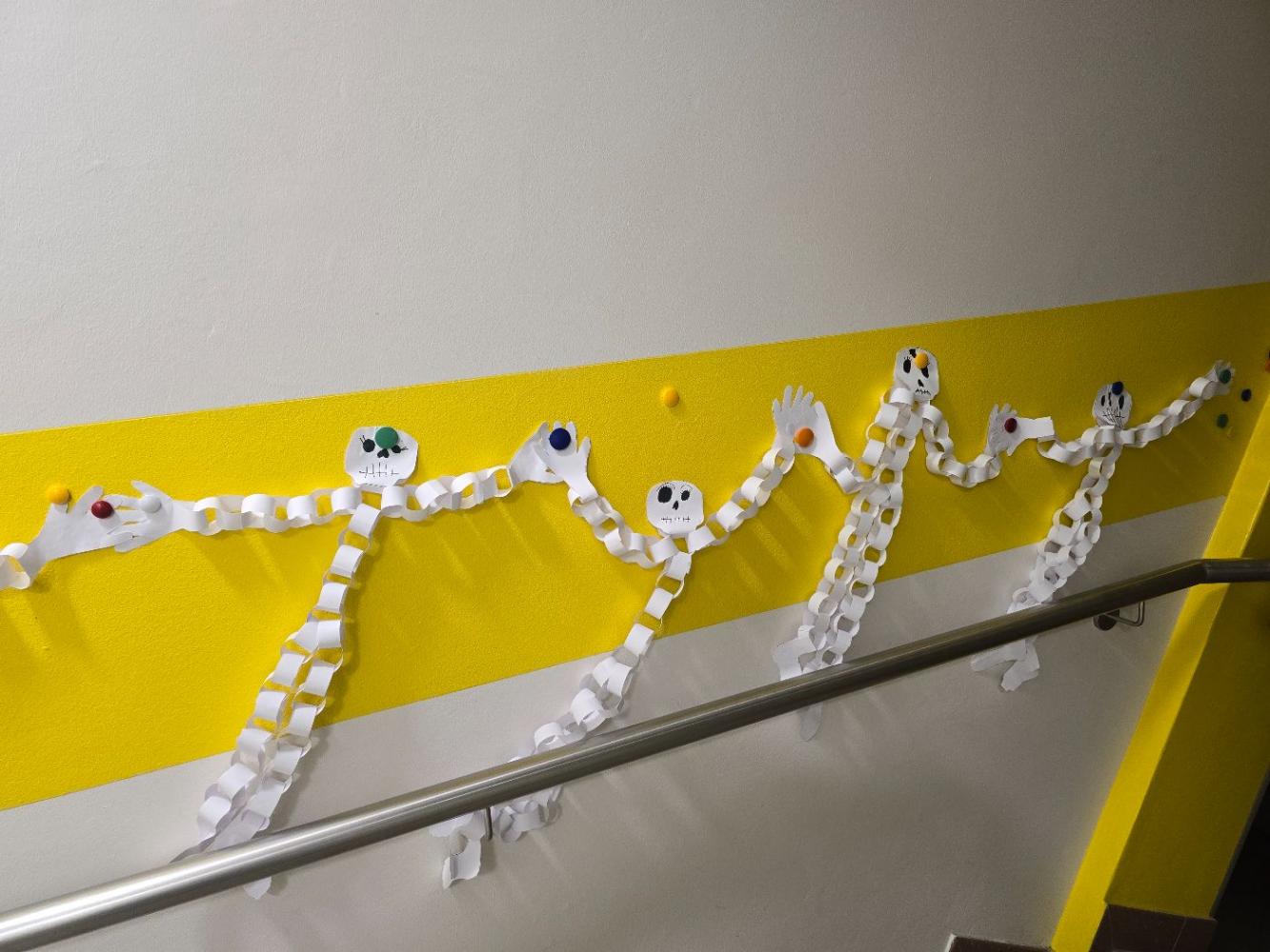 Uuuuuh, in den Tagen vor Halloween wimmelt es plötzlich im Schulhaus vor Gespenstern, Skeletten, Fledermäusen und grimmig dreinschauenden Kürbissen.