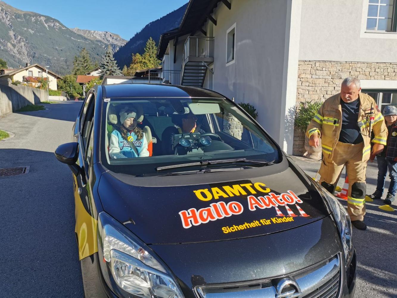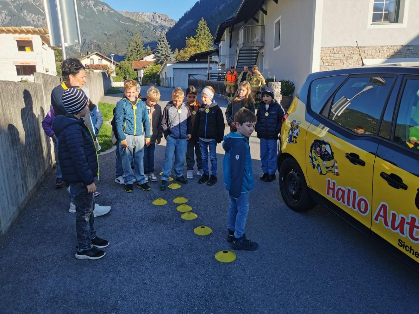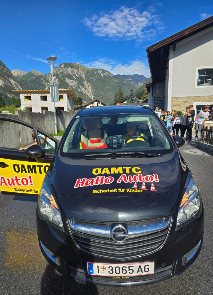 "Hallo, Auto!" heißt die bewährte ÖAMTC-Aktion, die unseren Dritterlern anschaulich die Formel "Reaktionsweg + Bremsweg = Anhalteweg" kindgerecht vermittelt. Das macht gekonnt und v.a. auf herzliche Art und Weise Kathi vom ÖAMTC, die immer gerne nach Nassereith kommt. Kein Wunder sorgen die Gemeindearbeiter und die Reservisten der Feuerwehr stets für optimale Bedingungen in der extra dafür abgesperrten Schulgasse.