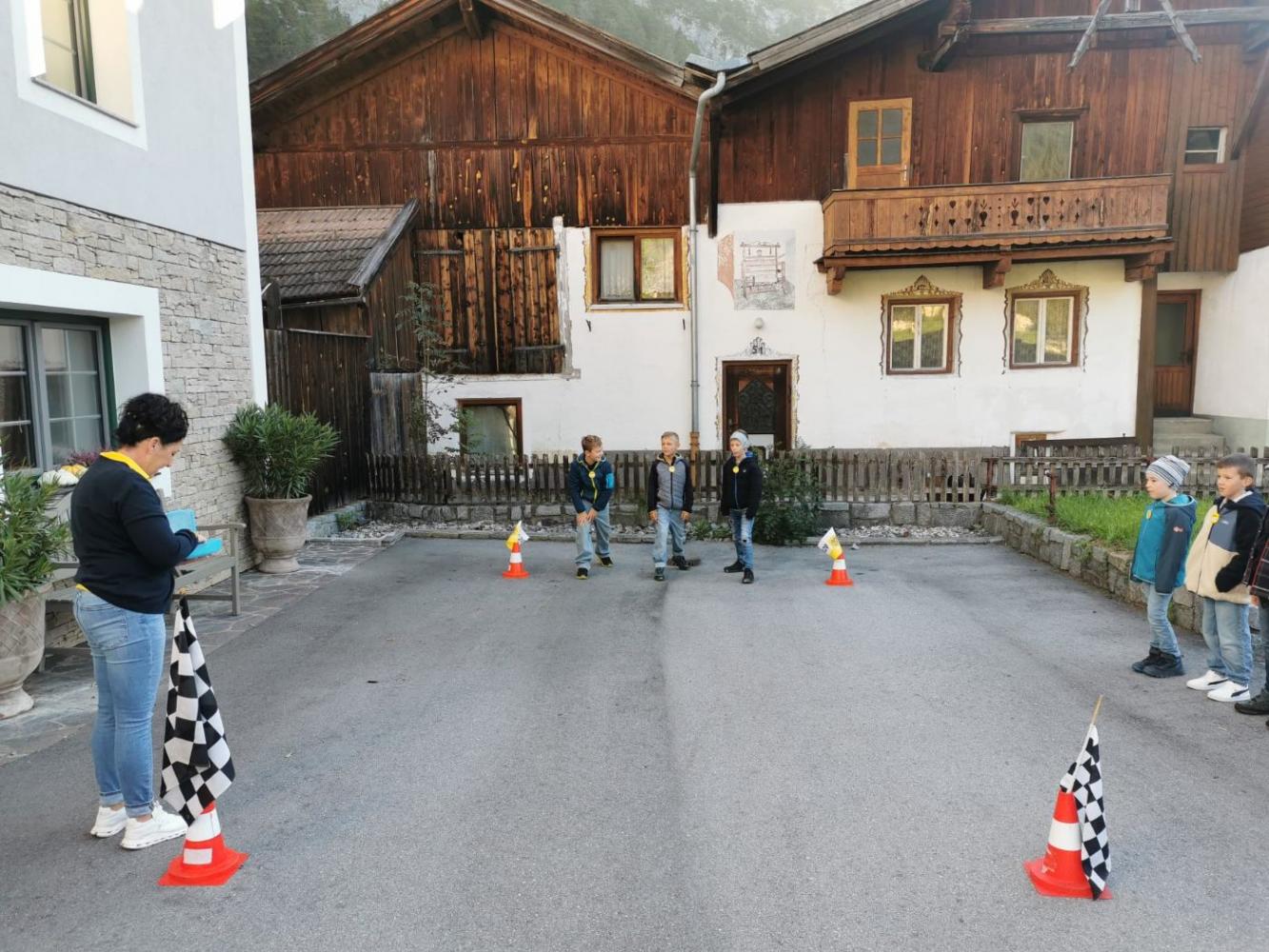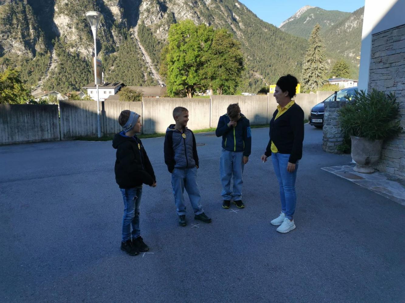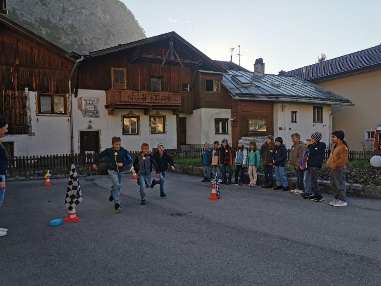 "Hallo, Auto!" heißt die bewährte ÖAMTC-Aktion, die unseren Dritterlern anschaulich die Formel "Reaktionsweg + Bremsweg = Anhalteweg" kindgerecht vermittelt. Das macht gekonnt und v.a. auf herzliche Art und Weise Kathi vom ÖAMTC, die immer gerne nach Nassereith kommt. Kein Wunder sorgen die Gemeindearbeiter und die Reservisten der Feuerwehr stets für optimale Bedingungen in der extra dafür abgesperrten Schulgasse.