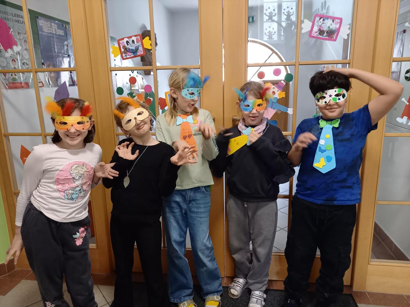 Kunterbunte Maskenparade von VS Nassereith 26. Februar 2025 VSN kreativ Tagesbetreuung Autupetehe Faschingszeit ist Maskenzeit!Die Kinder unserer Tagesbetreuung verstecken sich hinter ihren selbstgebastelten Masken, die sie stolz ganz "überdreht" präsentieren.Auch mit roten Schaumstoff-Clown-Nasen ist man - schwuppdiwupp - im FASCHINGSMODUS...