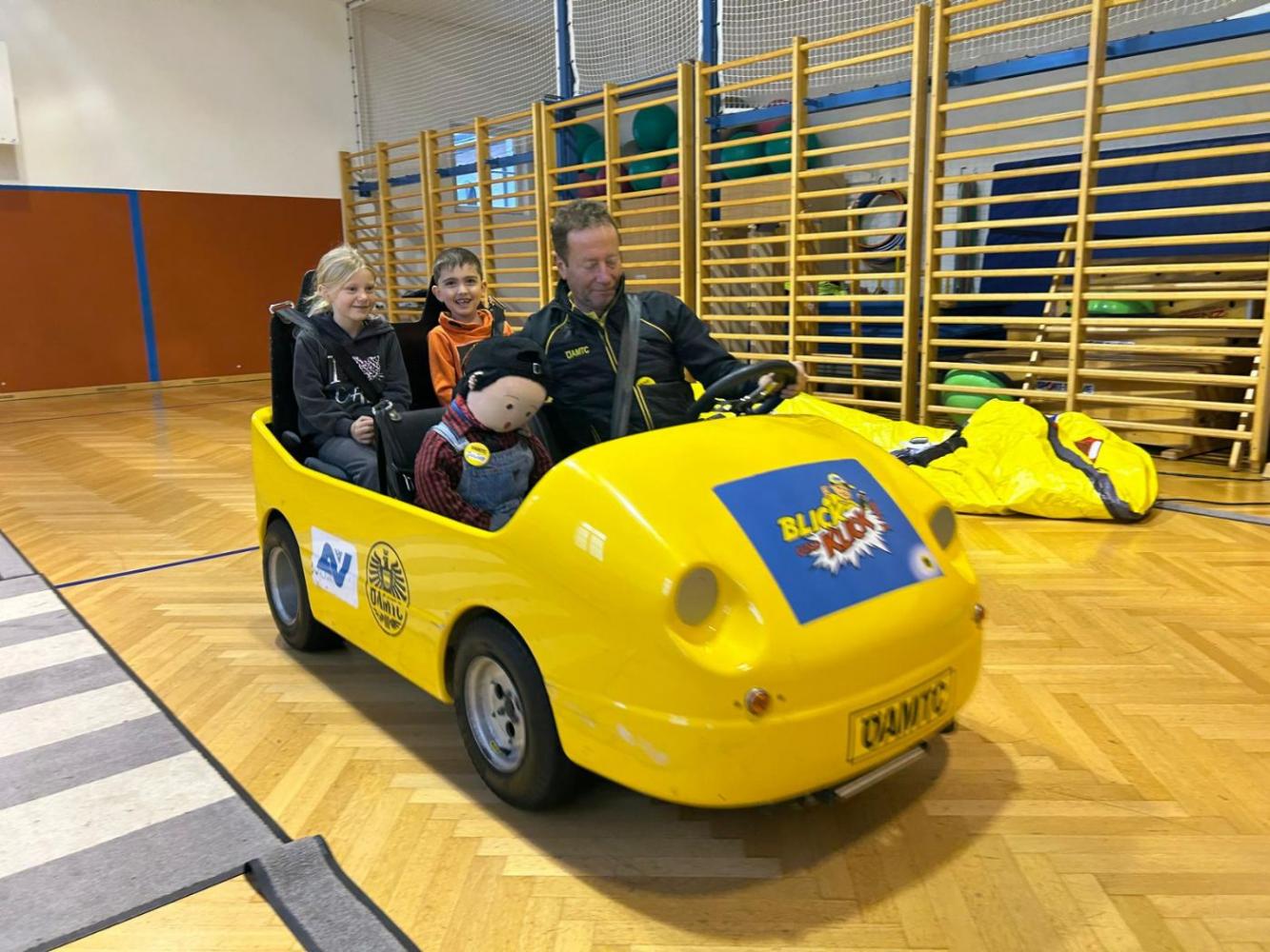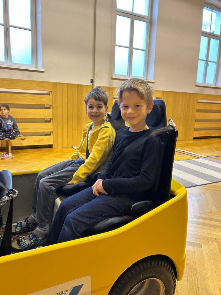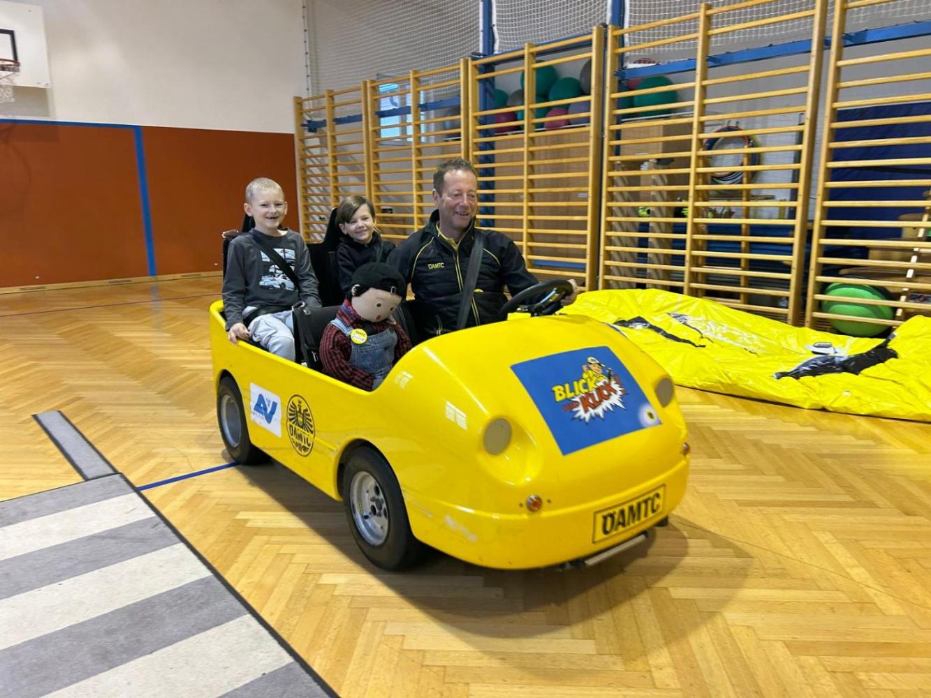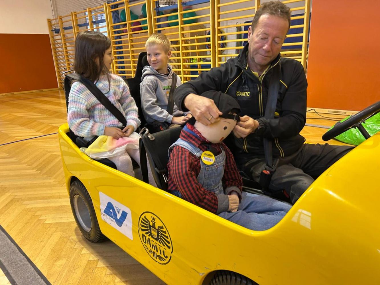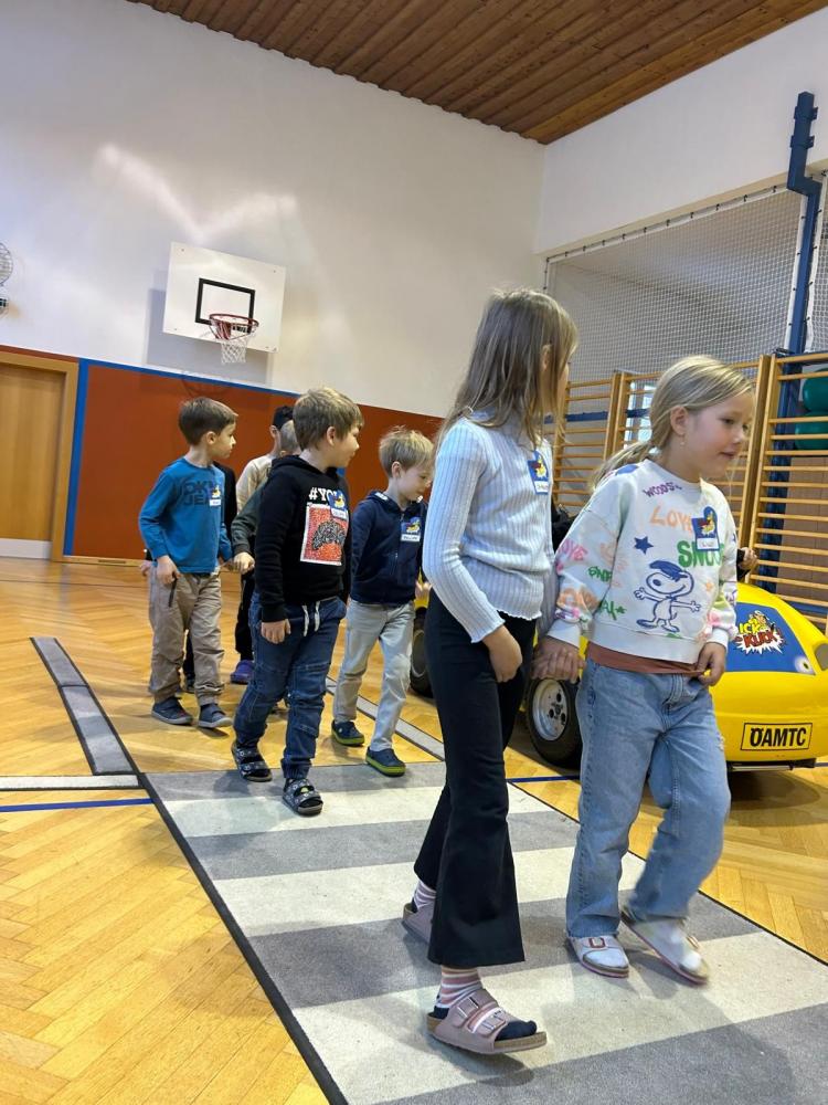 Unsere Ersterler wissen es besser und sind jetzt ausgebildete Straßenverkehr-Profis. Haben sie doch beim spektakulären Verkehrssicherheitsprogramm des ÖAMTC "Blick & Klick" teilgenommen. In unserem Turnsaal wird u.a das richtige Verhalten am Gehsteig und das sichere Überqueren der Straße trainiert. Und in einem quietschenden Elektroauto wird die Notwendigkeit des Sicherheitsgurtes und des Kindersitzes gezeigt und ausprobiert.