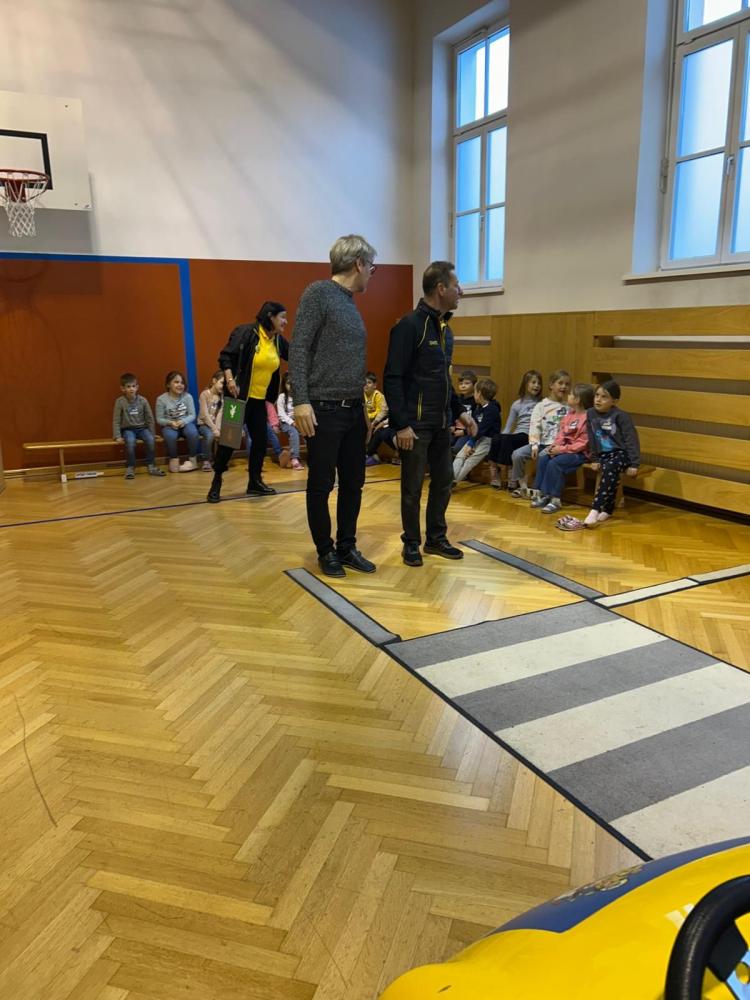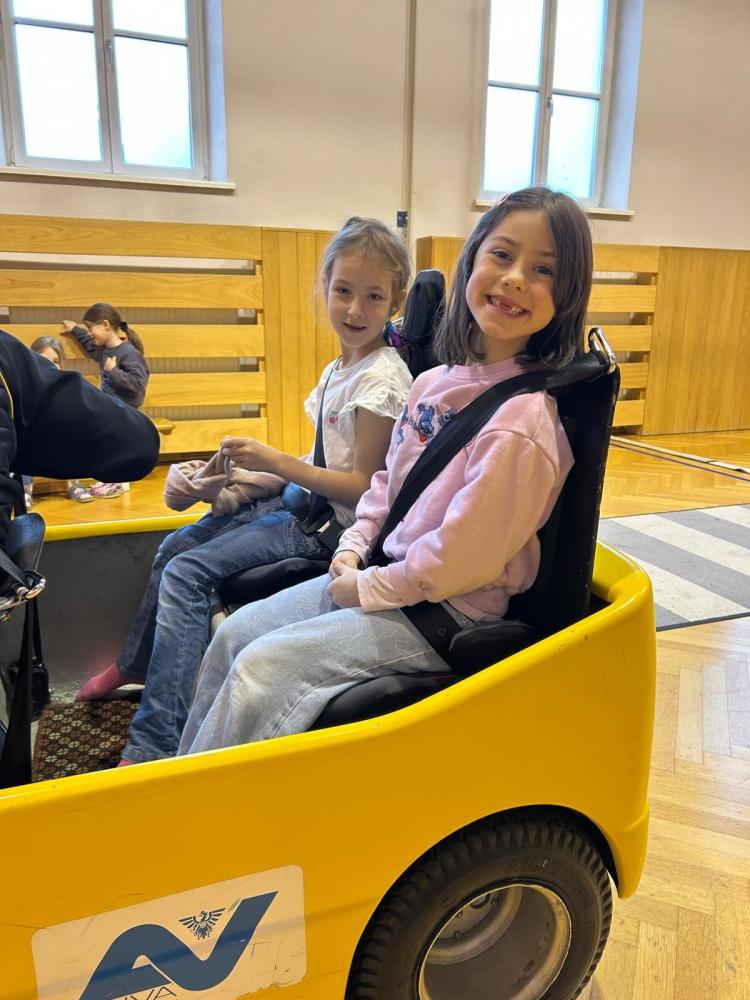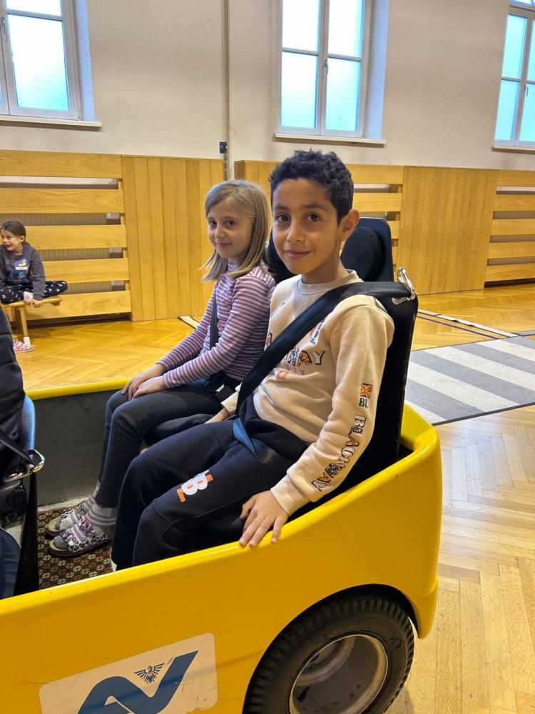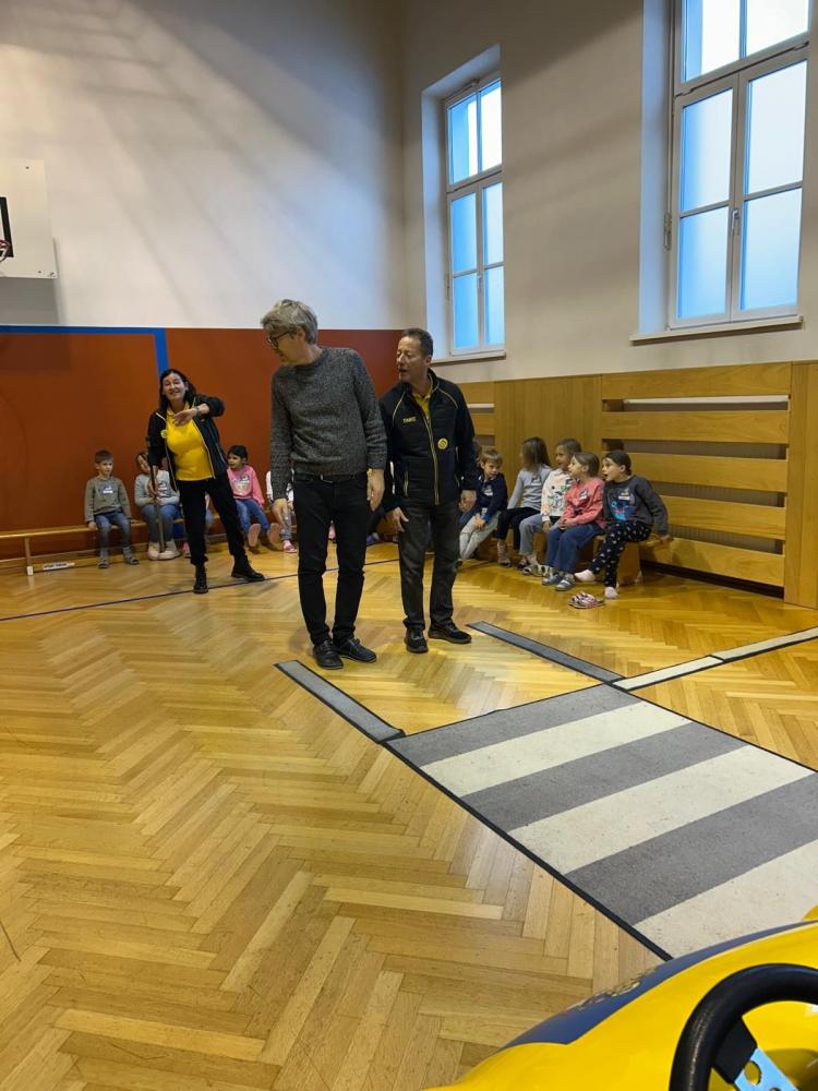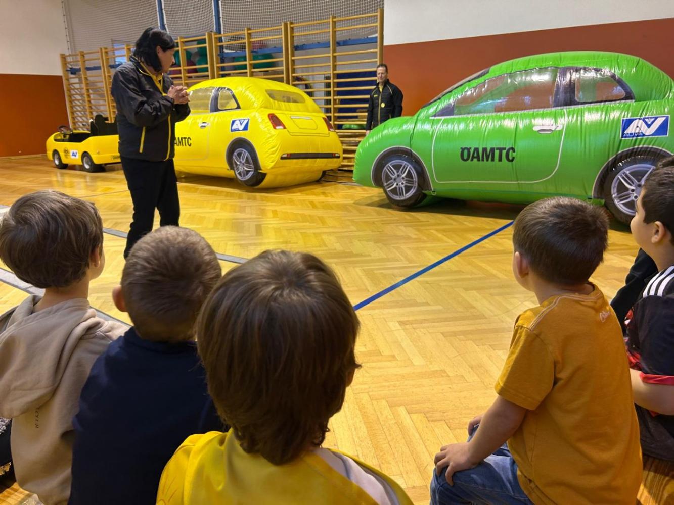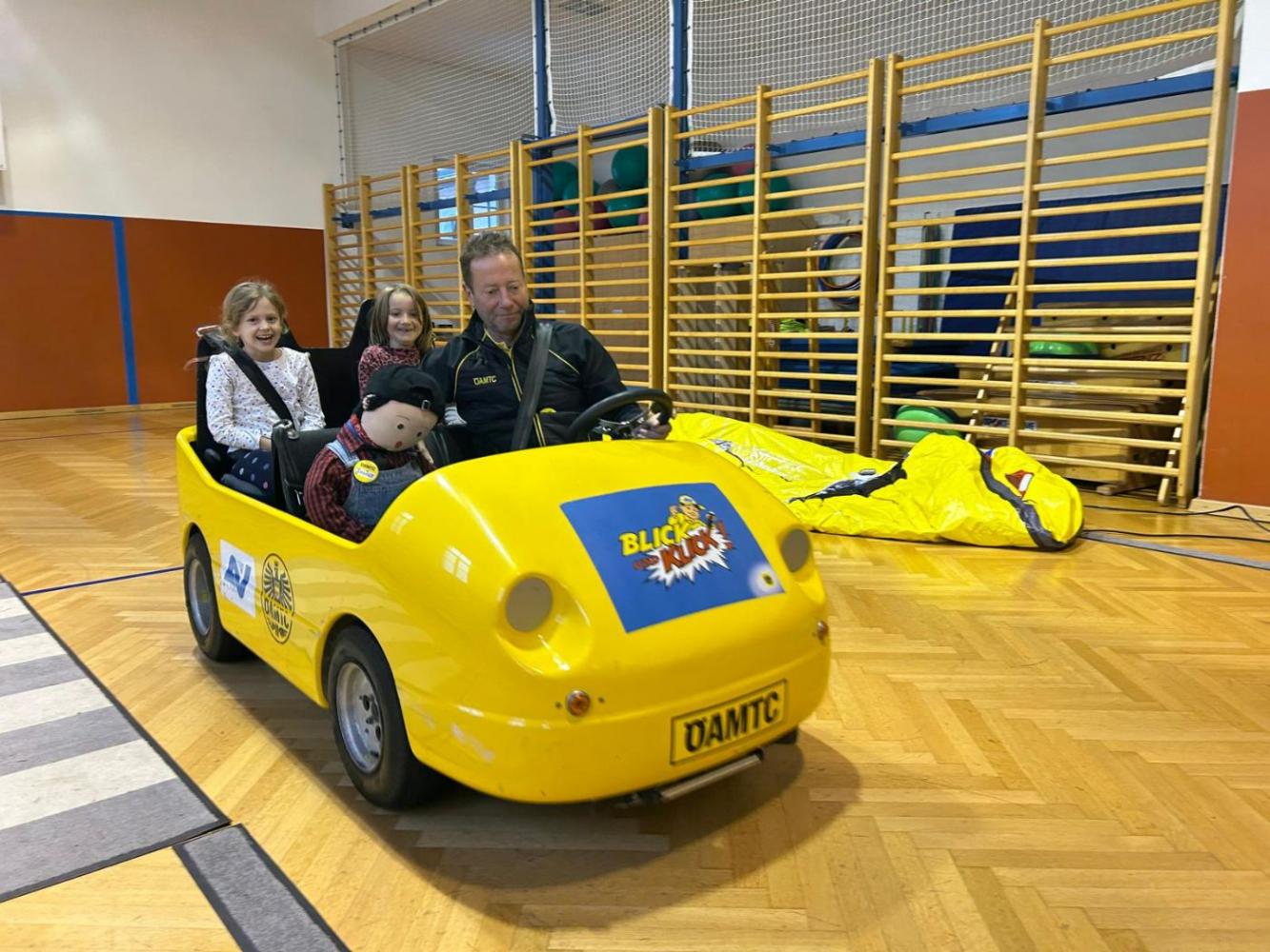 Unsere Ersterler wissen es besser und sind jetzt ausgebildete Straßenverkehr-Profis. Haben sie doch beim spektakulären Verkehrssicherheitsprogramm des ÖAMTC "Blick & Klick" teilgenommen. In unserem Turnsaal wird u.a das richtige Verhalten am Gehsteig und das sichere Überqueren der Straße trainiert. Und in einem quietschenden Elektroauto wird die Notwendigkeit des Sicherheitsgurtes und des Kindersitzes gezeigt und ausprobiert.