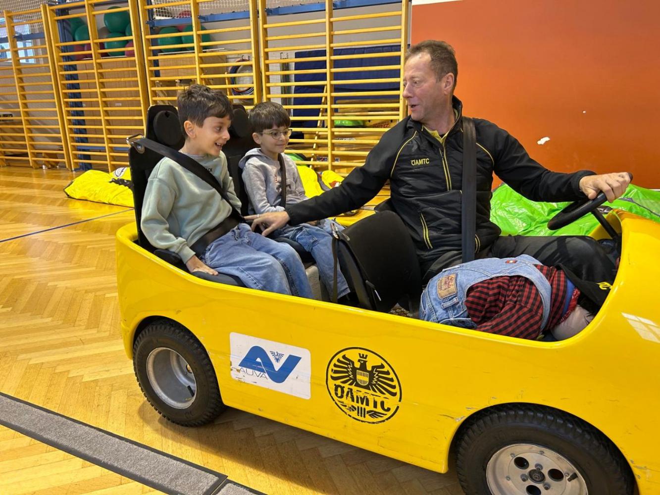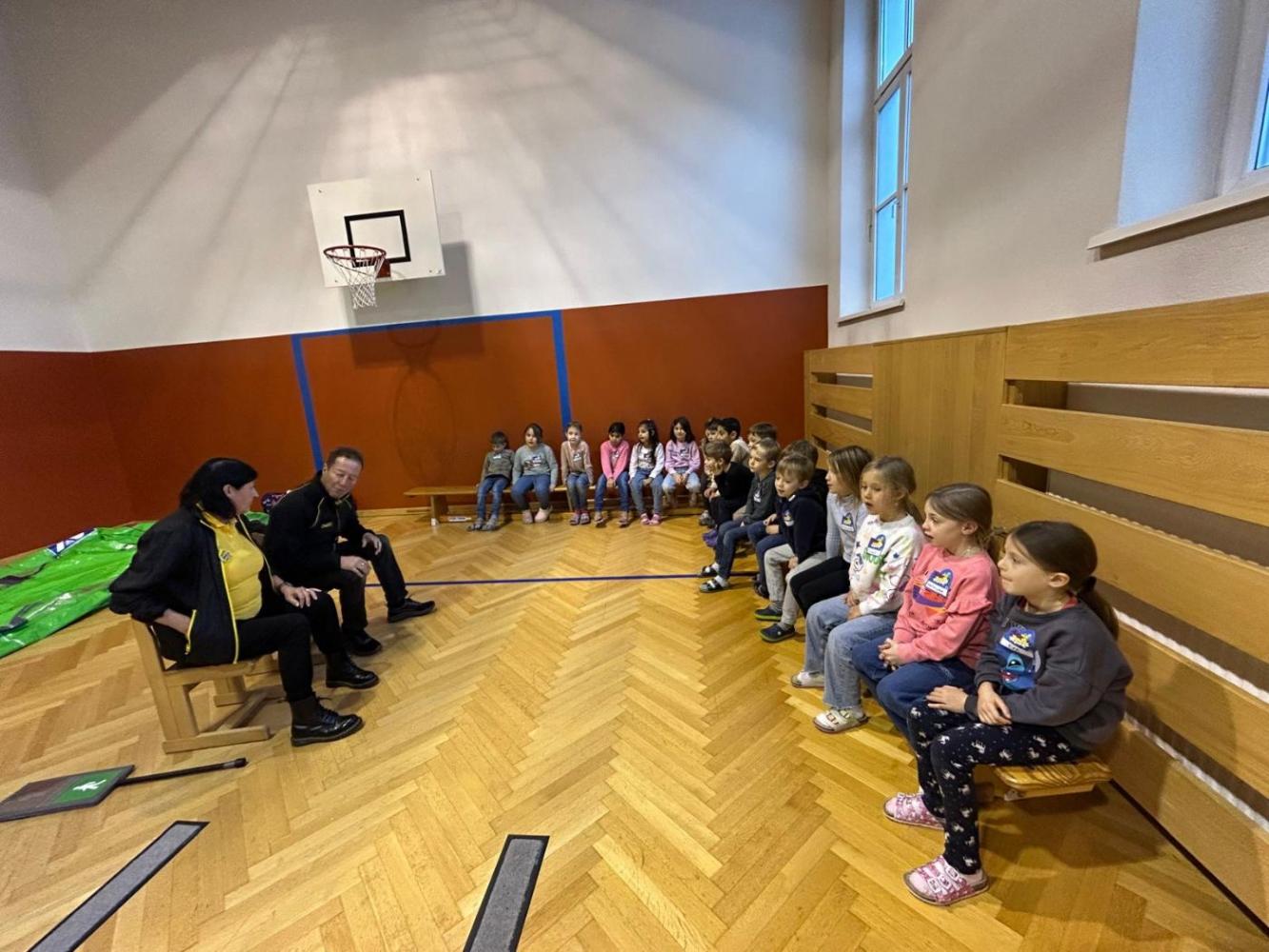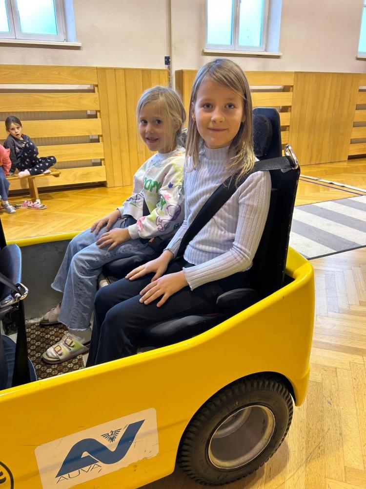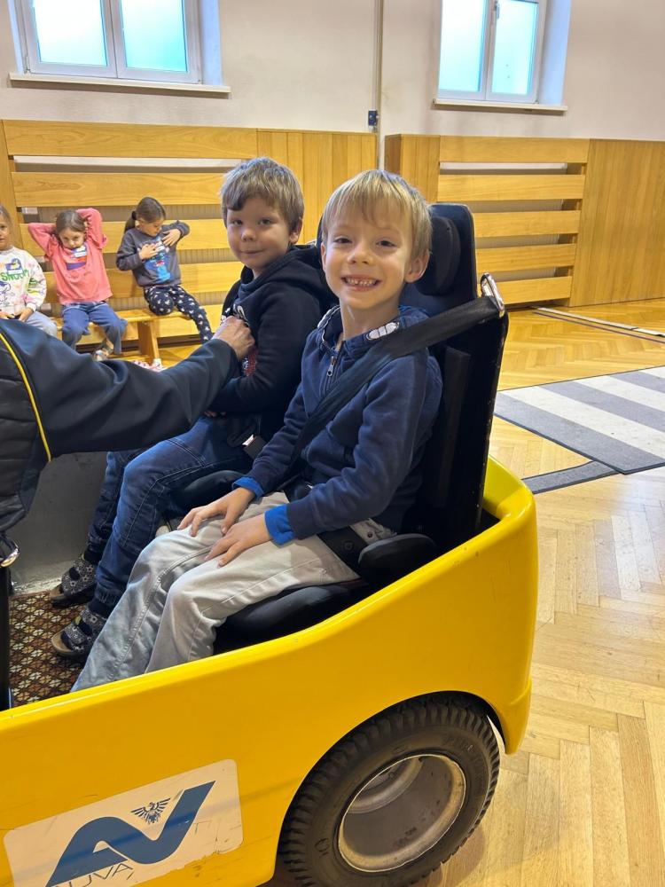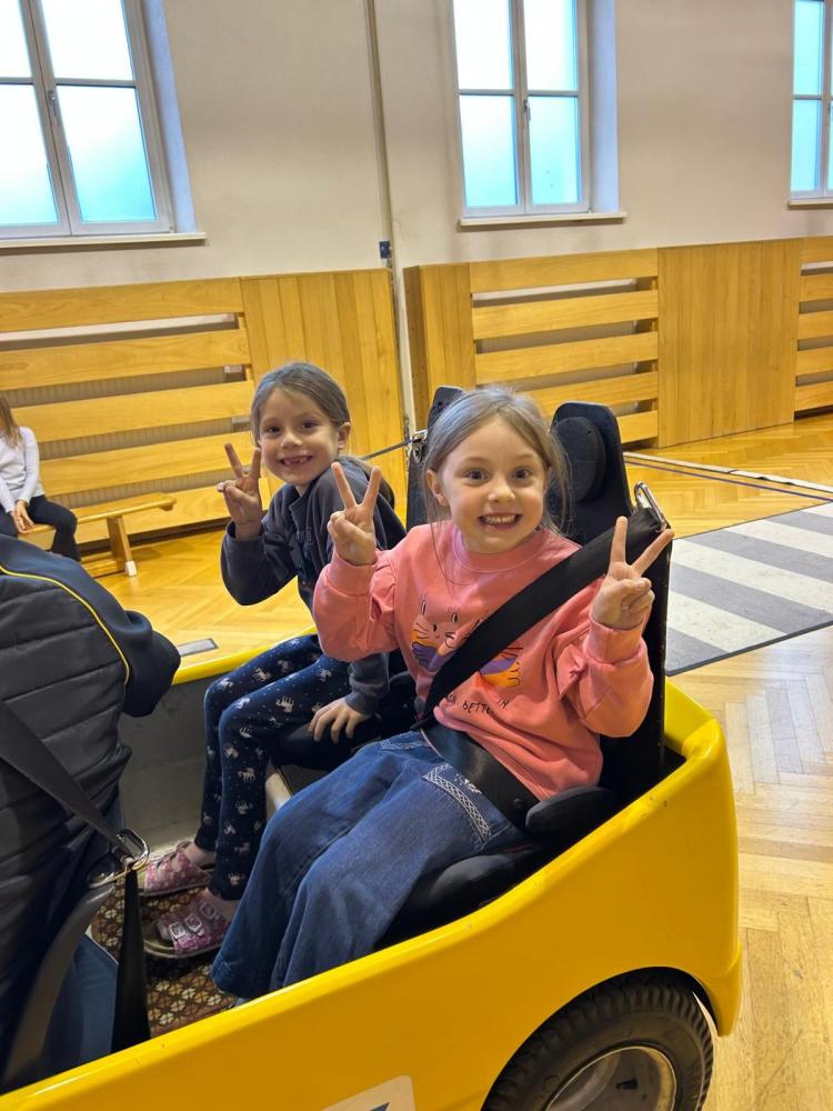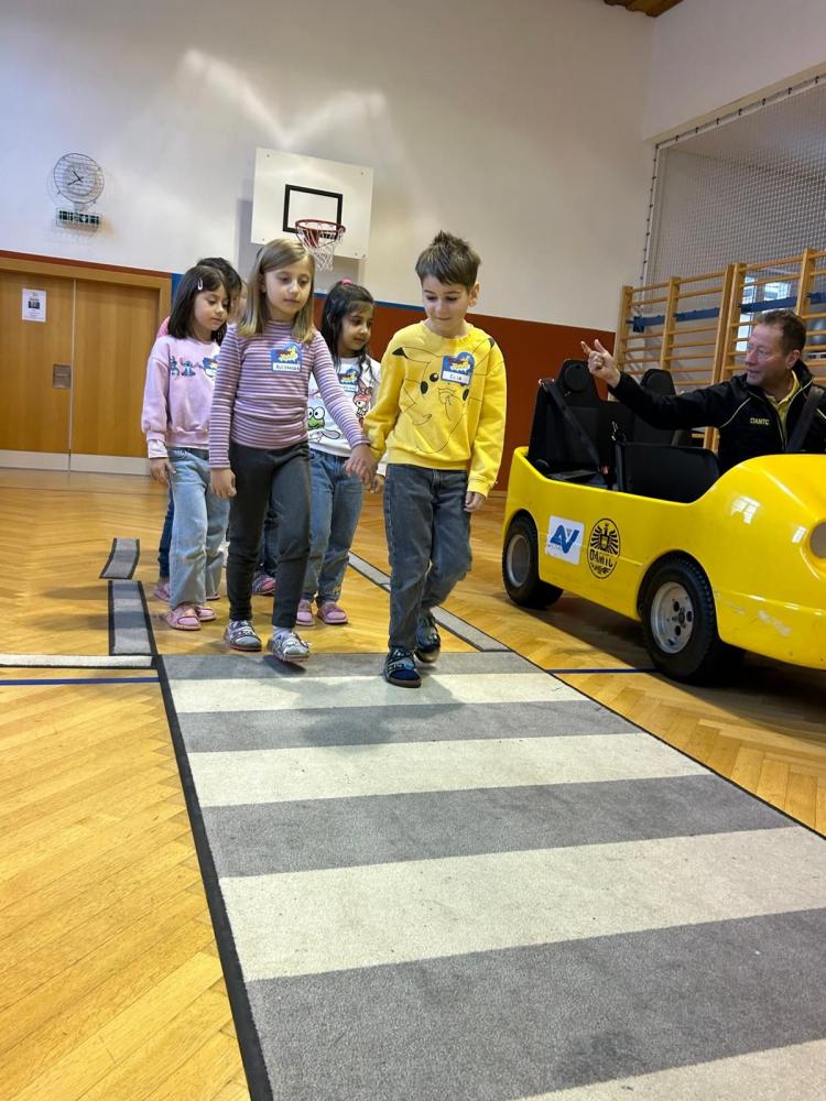 Unsere Ersterler wissen es besser und sind jetzt ausgebildete Straßenverkehr-Profis. Haben sie doch beim spektakulären Verkehrssicherheitsprogramm des ÖAMTC "Blick & Klick" teilgenommen. In unserem Turnsaal wird u.a das richtige Verhalten am Gehsteig und das sichere Überqueren der Straße trainiert. Und in einem quietschenden Elektroauto wird die Notwendigkeit des Sicherheitsgurtes und des Kindersitzes gezeigt und ausprobiert.