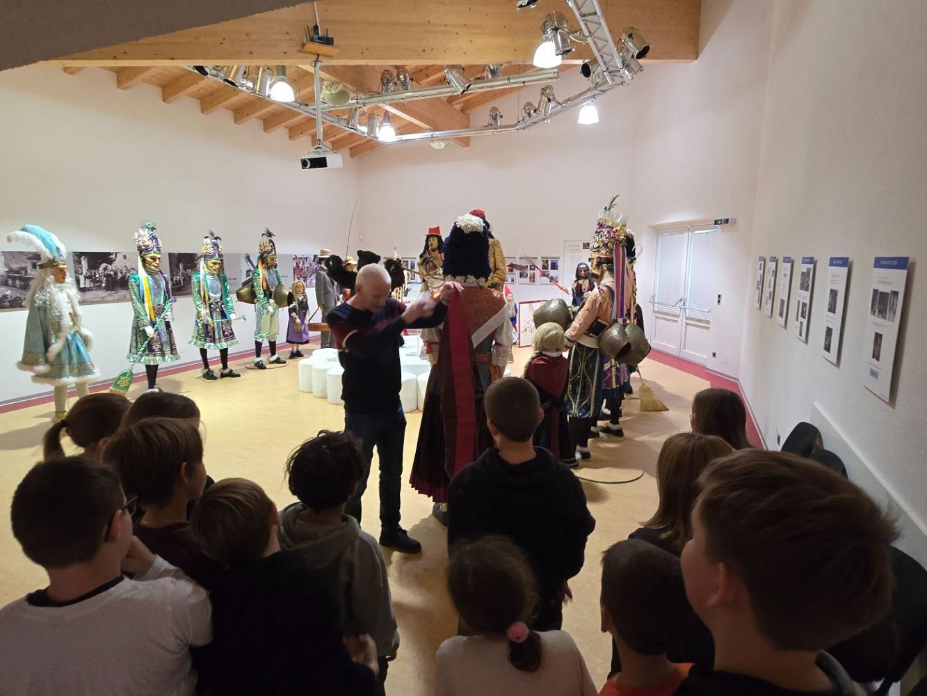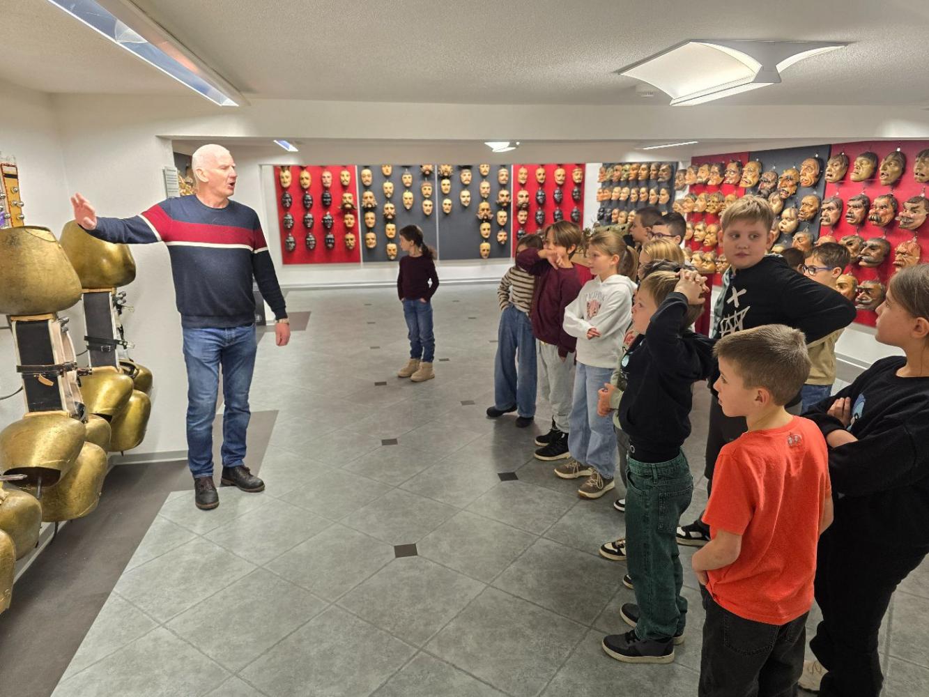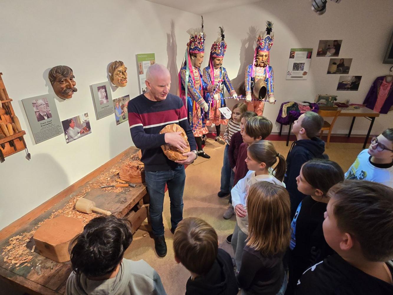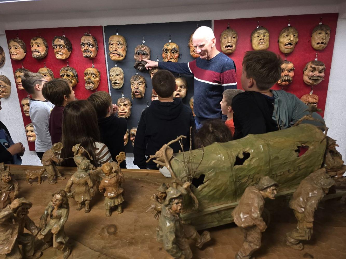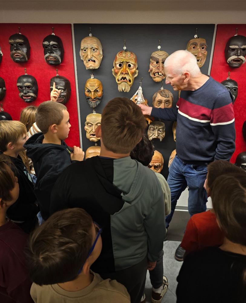 Viele Volksschüler sind ja ohnehin schon im "Fåsnåchtsfieber" - aber Helmut (Danke dafür!) verstand es meisterhaft bei seiner tollen Führung durchs Fåsnåchtsmuseum die Kinder in den Fåsnåchtsbann zu ziehen und somit die "Fåsnåchtsfieberkurve" noch weiter nach oben zu schrauben.