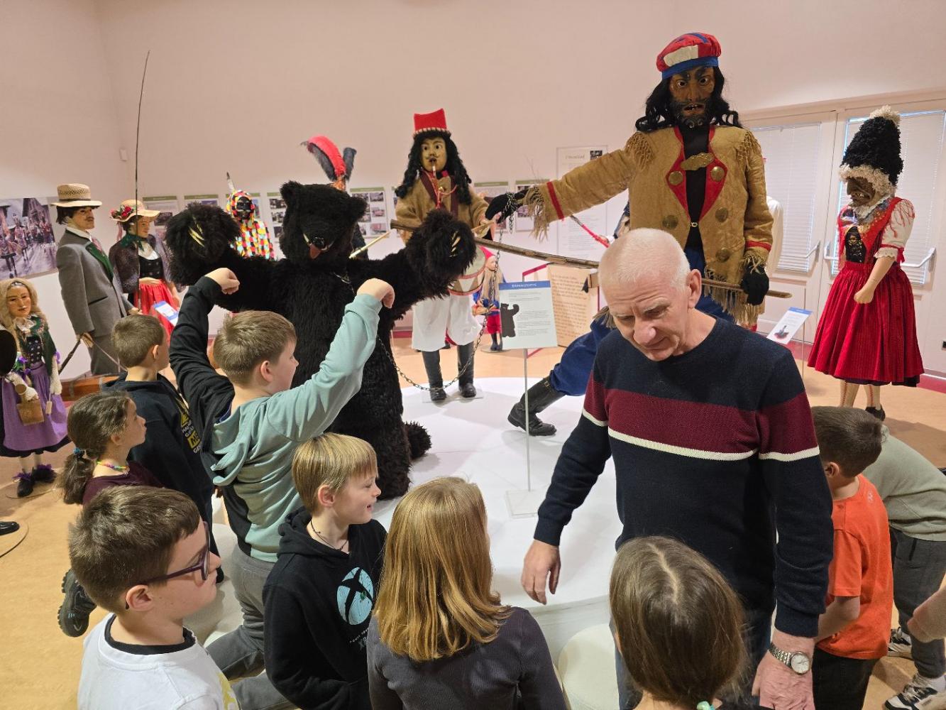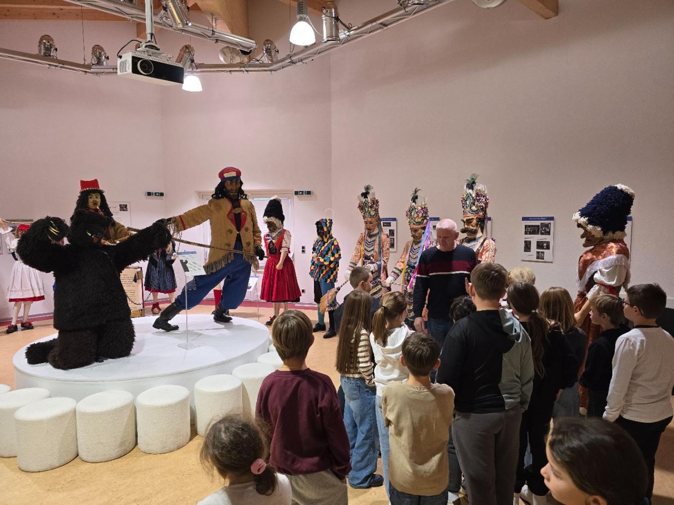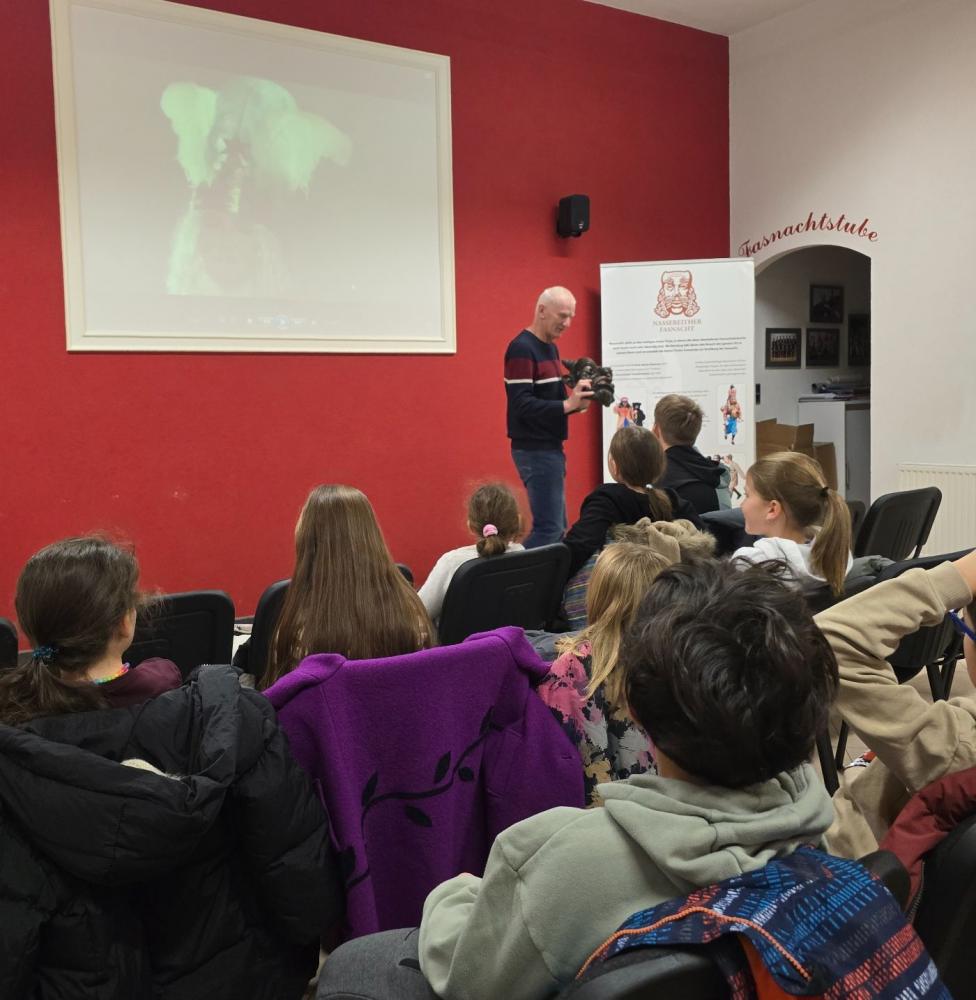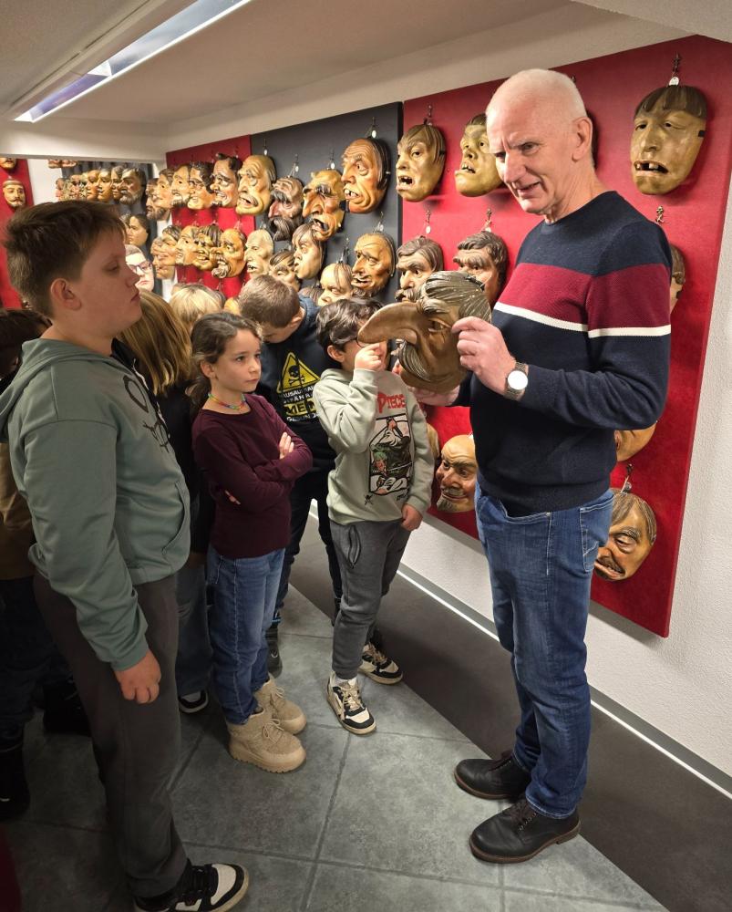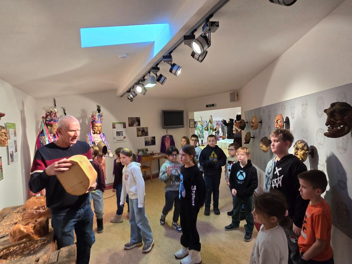Viele Volksschüler sind ja ohnehin schon im "Fåsnåchtsfieber" - aber Helmut (Danke dafür!) verstand es meisterhaft bei seiner tollen Führung durchs Fåsnåchtsmuseum die Kinder in den Fåsnåchtsbann zu ziehen und somit die "Fåsnåchtsfieberkurve" noch weiter nach oben zu schrauben.