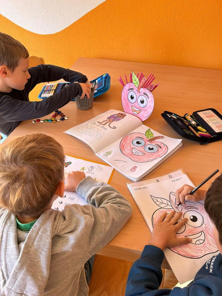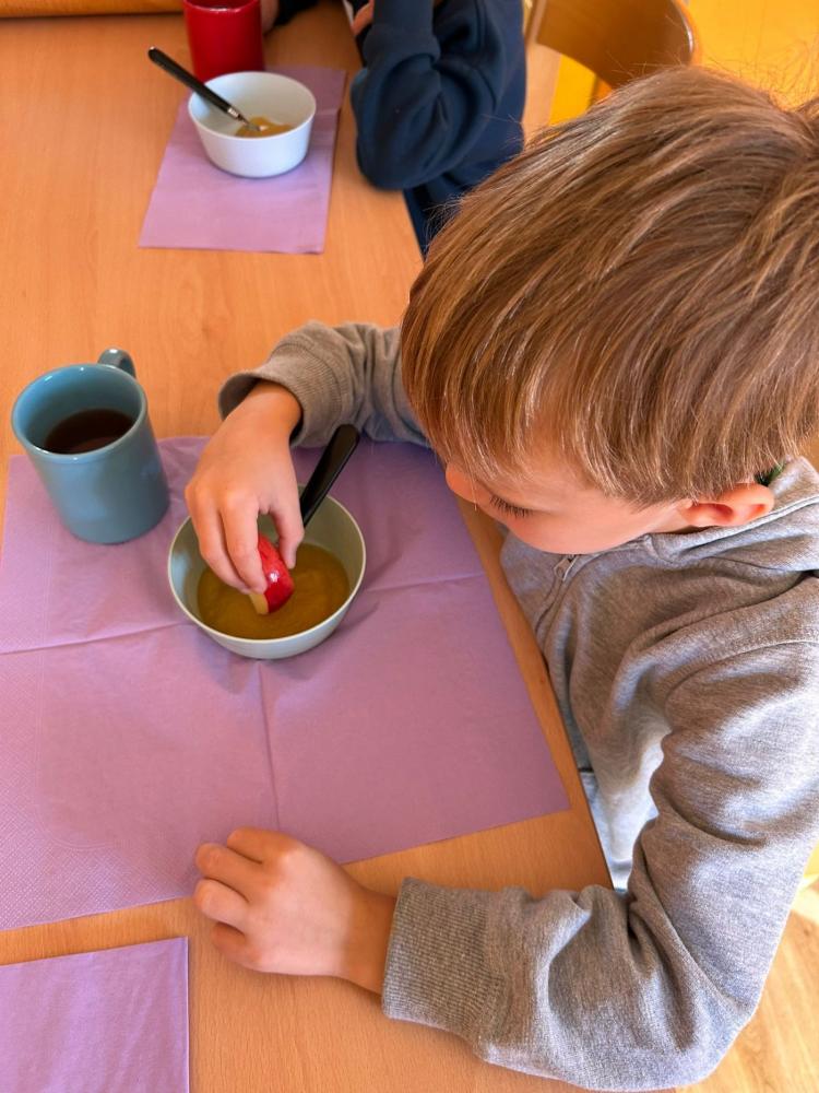 A wie Affe, Apfel und Apfelmus von VS Nassereith 03. Oktober 2025 1a 1b Ahhh, na klar, alles dreht sich hier ums A! Wunderbaaaaar!Das A wird von unseren Vorschülern nicht nur souverän gelegt, gebastelt und geschrieben, sondern auch verkostet.Und zwar in Form von Apfelschnitten kombiniert mit schmackhaften Apfelmus.